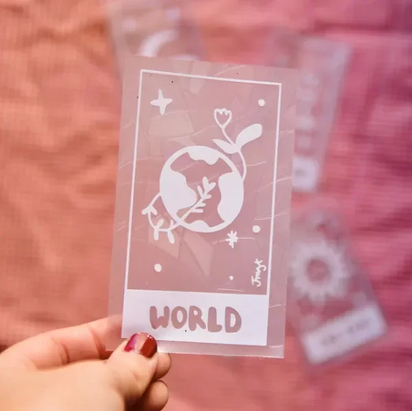 💡 El sticker se adhiere por estática, pero si tenés problemas para pegarlo, rociá un poco de agua.
